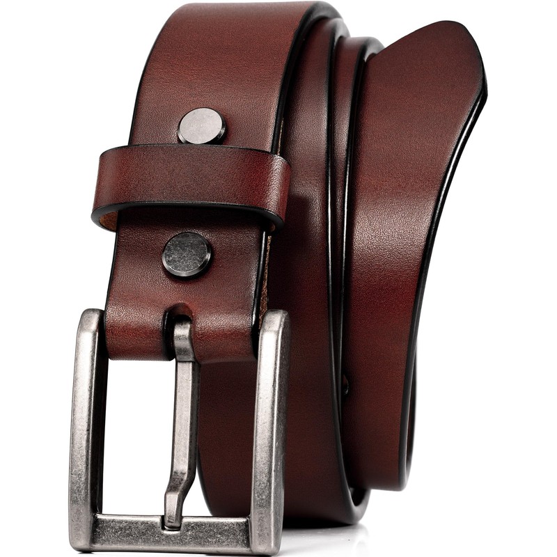 - [Perfect Fit]: Crafted with seven reinforced holes, this men's leather belt effortlessly adapts to various waist sizes. Moreover, to optimize comfort, order one size larger than your waist size. Finally, explore our sizing chart for the perfect fit tailored to you.