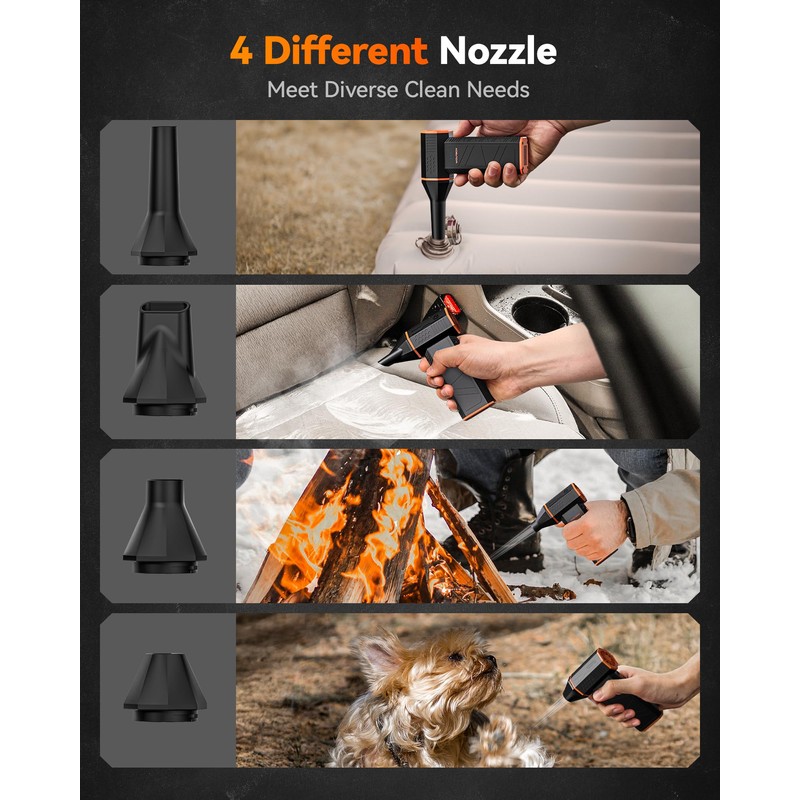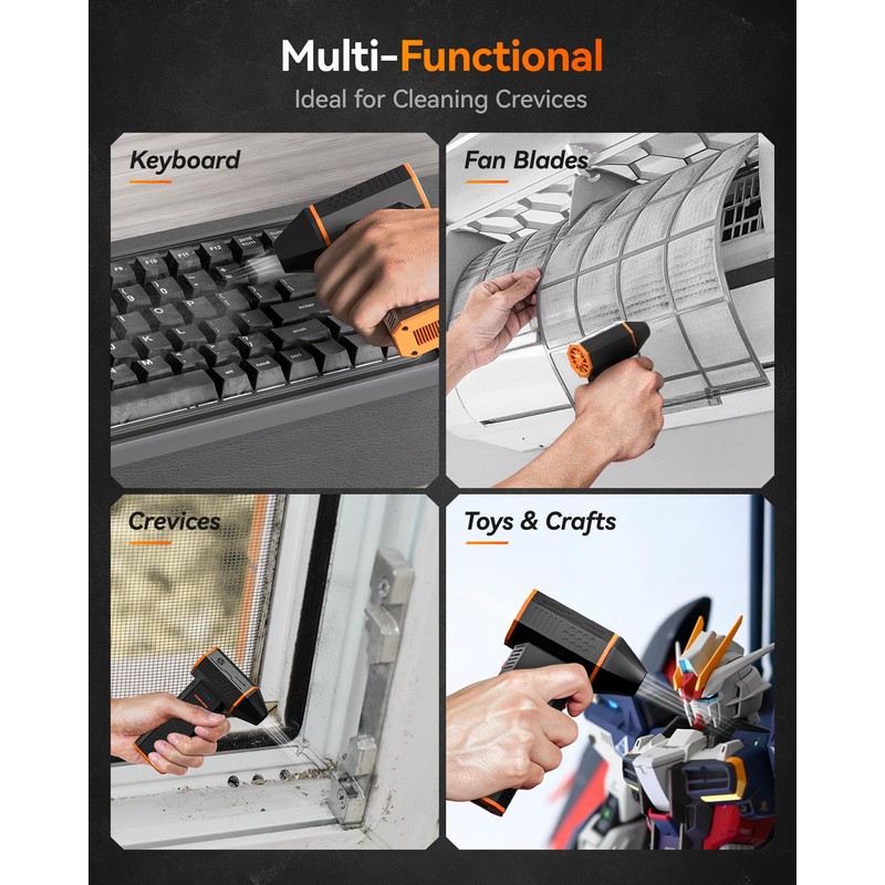 - Wide Application: WOLFBOX MF50 electric air duster comes with 4 nozzles, making it suitable for a variety of scenes, such as pc, keyboards, or other electronic devices. It also serves well for home clean and car duster,