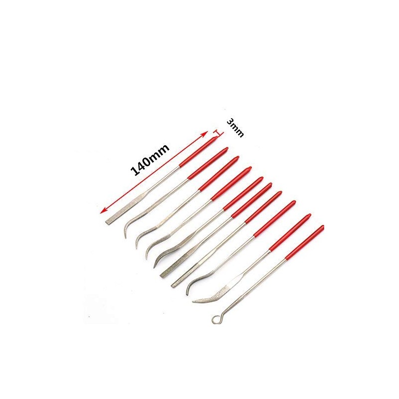 - Size: Shaft diameter (shaft diameter): 0.1 inch (3 mm) Total length: about 140mm The file can be sharpened almost anything, and can also be sharpened with a sword plate, and it will work on high speed steel with a hardness of 69