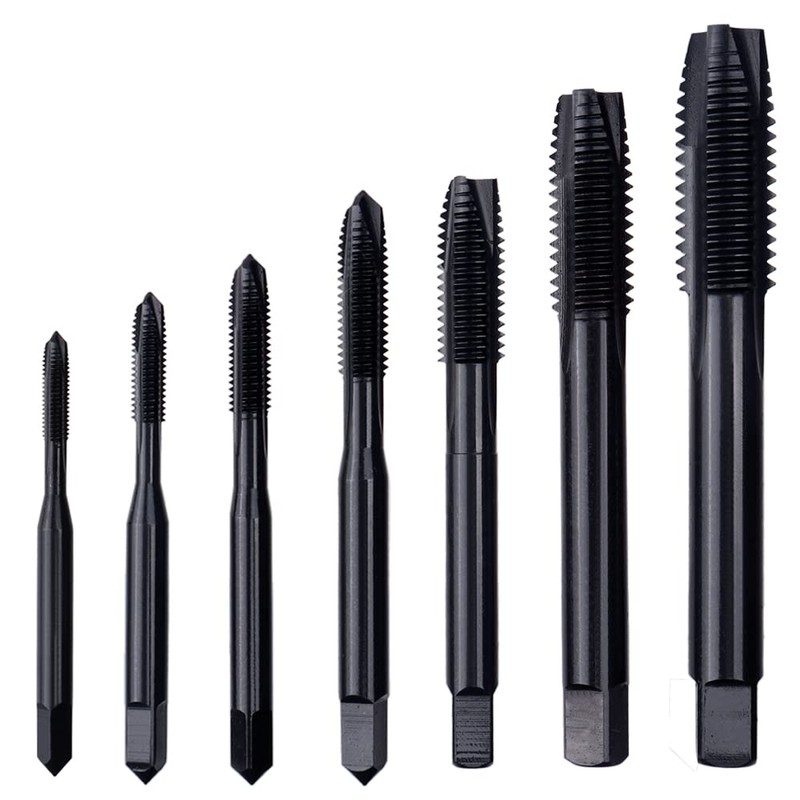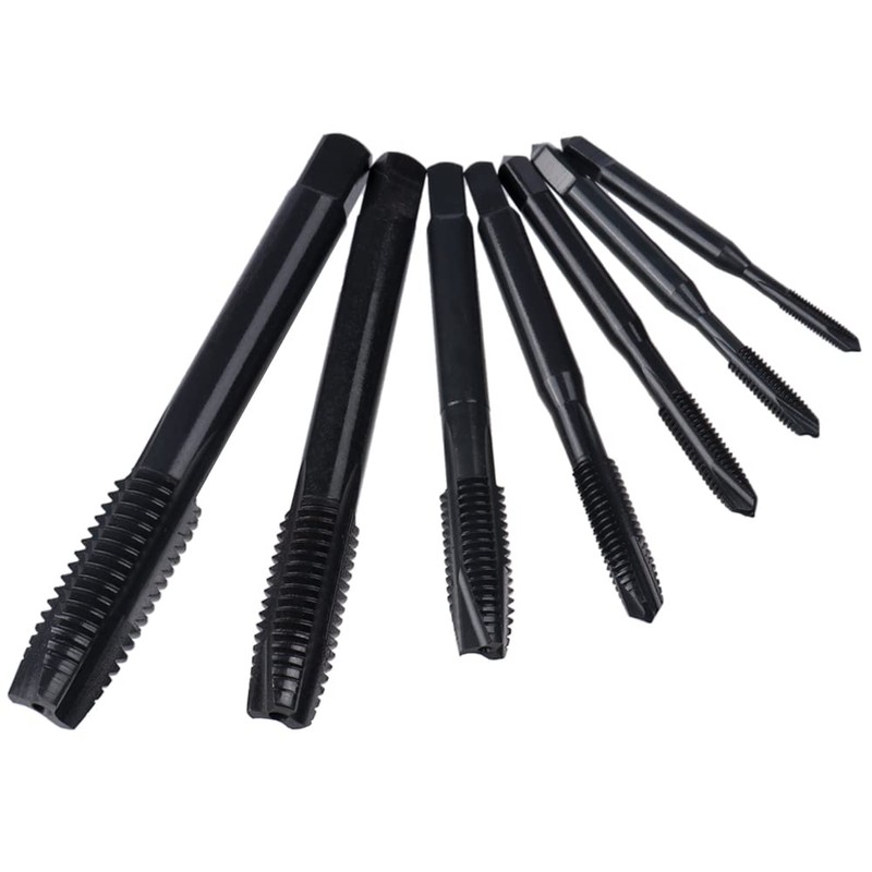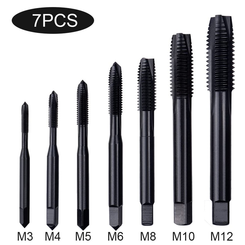Wolfride Spiral Point Tap Set Metric and Standard Tap Drill Bit Set Threading Tool M3 M4 M5 M6 M8 M10 M12 (7Pcs)