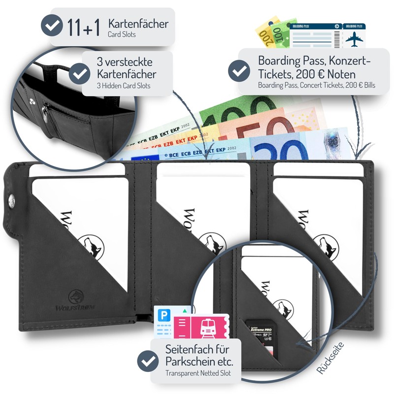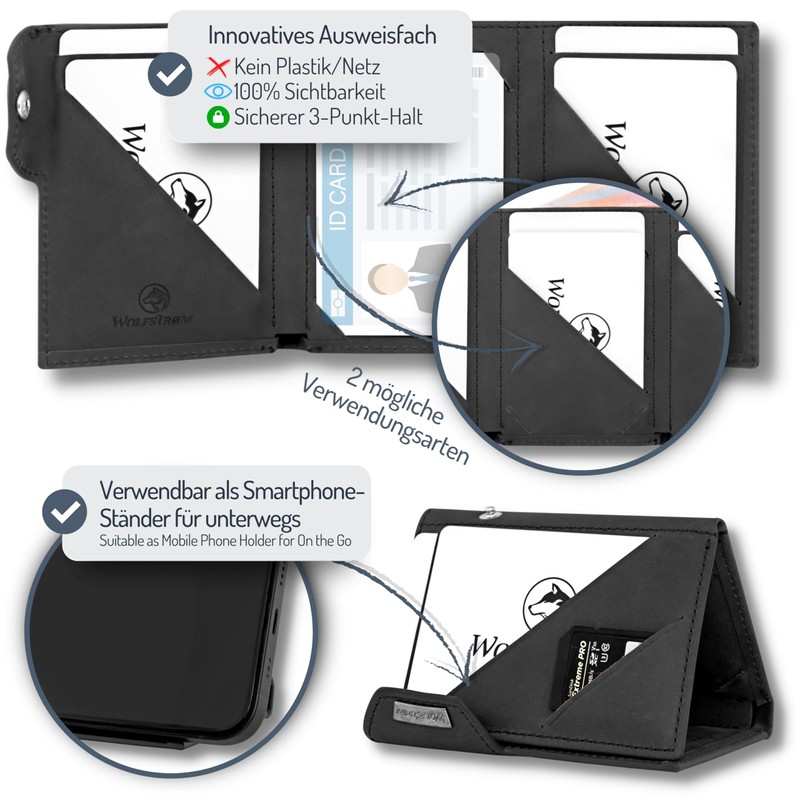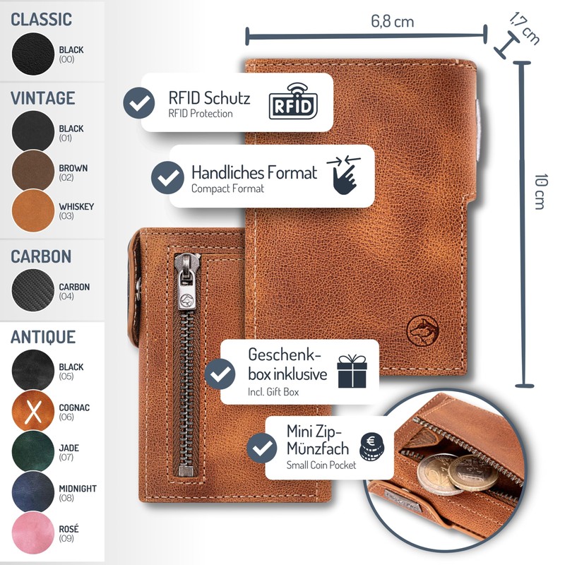 Wolfstrøm Slim Wallet 'Svente' I 11 Card Mini Wallet Men Small with Coin Pocket, RFID Protection – Cognac