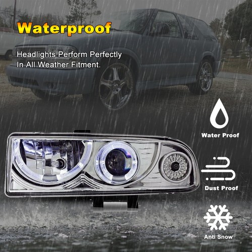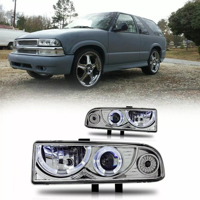For 98-04 Chevy S10 Pickup Blazer Chrome/Clear Headlights Head Lamp Assembly L+R