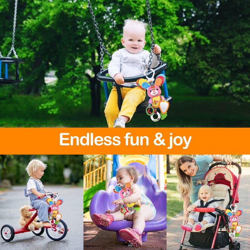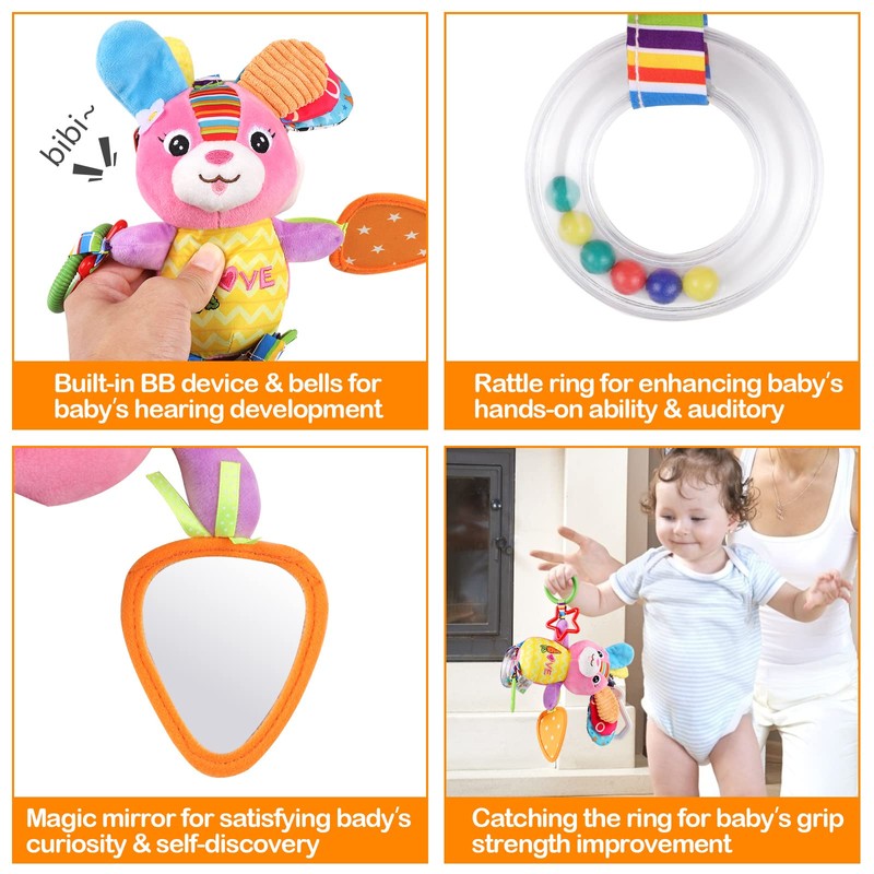 With its hook design, this toy can be hung on a pram, cot, pram, bed, car, etc. Accompany your baby at any time