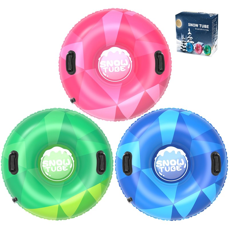 - 【Super Value 3Pack】WOLKEK inflatable snow tube set includes 3 sets of colorful and fashionable geometric snow tubes with healthy pigments. Suitable for the whole family to increase inter-family interaction and communication. Creates wonderful memories on cold winter days. The snow sleds are the best Christmas or birthday gift for kids, family and friends!