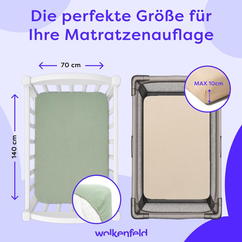 - Fitted sheet pram and bed sheet cradle made of muslin, suitable as a baby bed fitted sheet 70 x 140, cot sheet, 70 x 140 cm baby and fitted sheet baby. Soft, breathable, natural