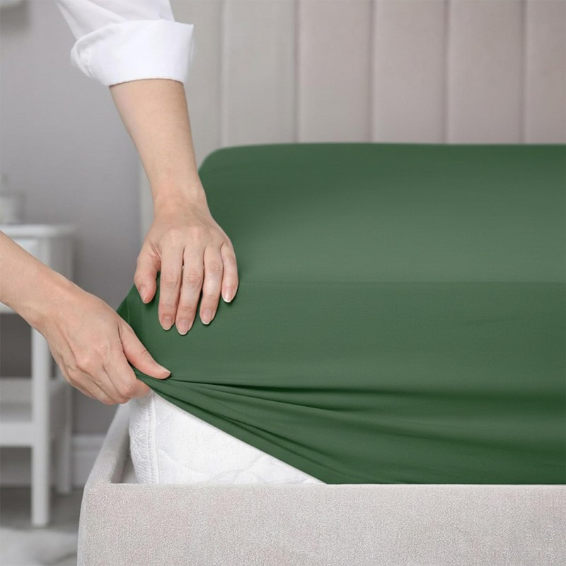 Wolkenfeld Fitted Sheet 180 x 200 cm to 200 x 200 - 100% Cotton - Super Soft Jersey Fitted Sheet for Mattress, Box Spring Bed or Topper - 5 to 20 cm Mattress Height, Forest Green