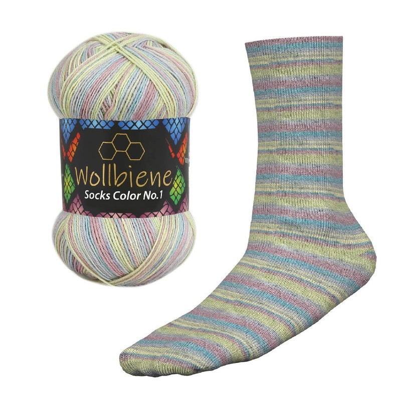 Our Wollbiene socks colour enchants the wool hearts. Look forward to a comfortable and durable sock yarn. Our imaginative colours and patterns inspire, you want to grab the needle immediately. Add colour to your feet, so it dances through life easier. Our socks colour is dimensionally stable, extremely durable and machine washable at 30°C. It has a running length of 420 m per 100 g, so 1 pair of socks up to approx. Size: 46 out.