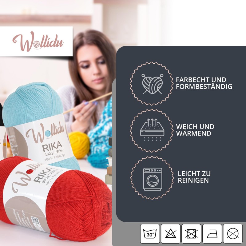 - With Rika acrylic yarn, you can enjoy brilliance in any colour, excellent tear resistance and easy handling. Thanks to its cuddly soft texture similar to that of wool, your next knitting or crochet project will be a feel-good work of art.