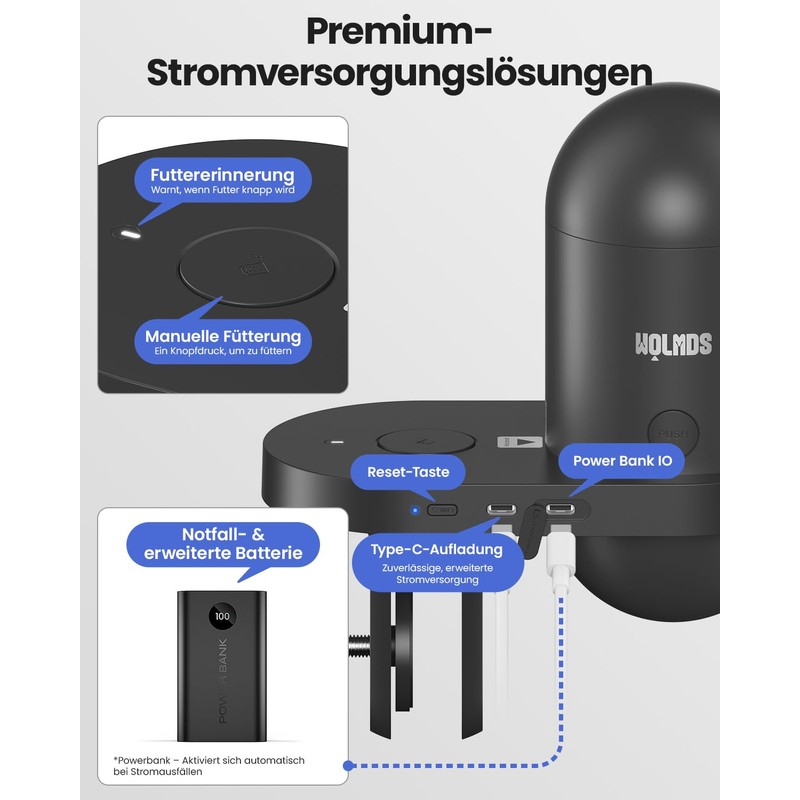 • A Breakthrough Aquarium Care Feeder This automatic fish feeder for aquarium has two power supply modes - mains power and seamless power bank backup support (power bank not included). In the event of a power outage, the power bank adopts smoothly to ensure uninterrupted feeding and monitoring, thus standing out from all competitors.