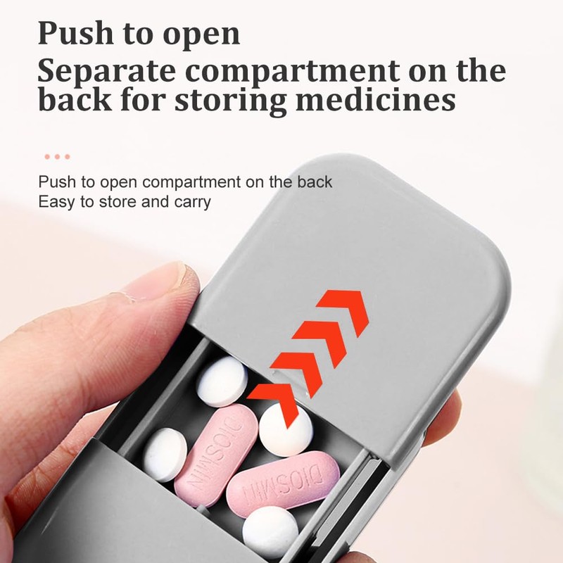 - EASY TO USE - The pill box is designed with an in-line switch to ensure the pill box is always closed and will not automatically pop out in your bag. And when you open the box, the pills don't spill out all of a sudden. Ideal for carrying and cutting pills while taking them.