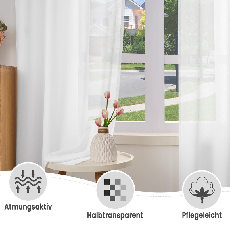 WOLTU Curtains with Ruffle Tape, Linen Look, Semi-Transparent Voile Linen Curtain, Stores, Window Curtains, Modern for Living Room, Bedroom, 135 x 245 cm, White (Pack of 1)