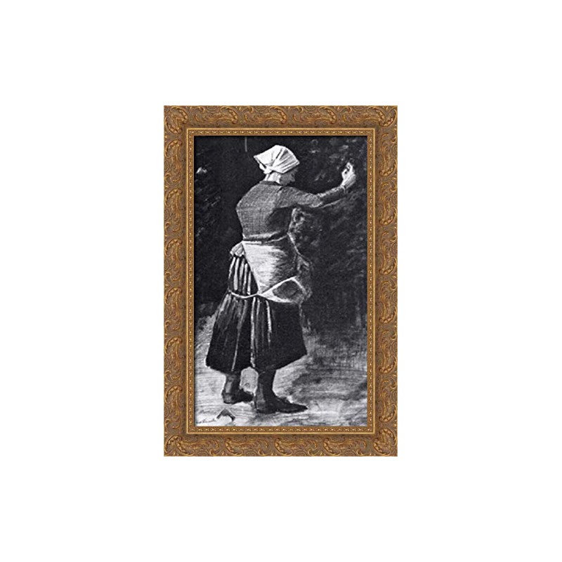 - Woman Feeding Chickens 16x24 Gold Ornate Wood Framed Canvas Art by Vincent van Gogh