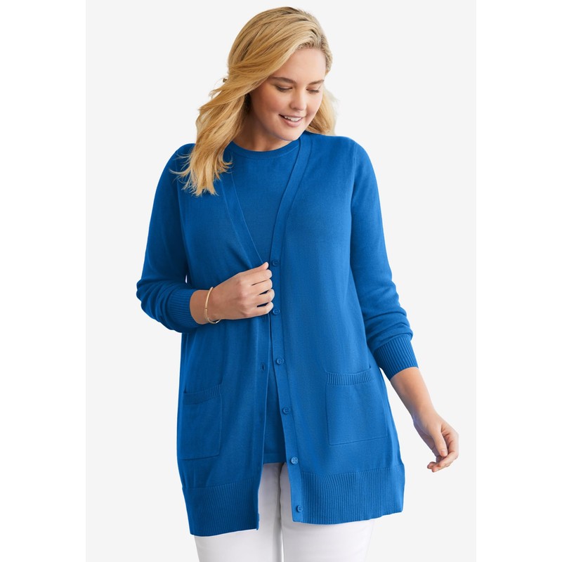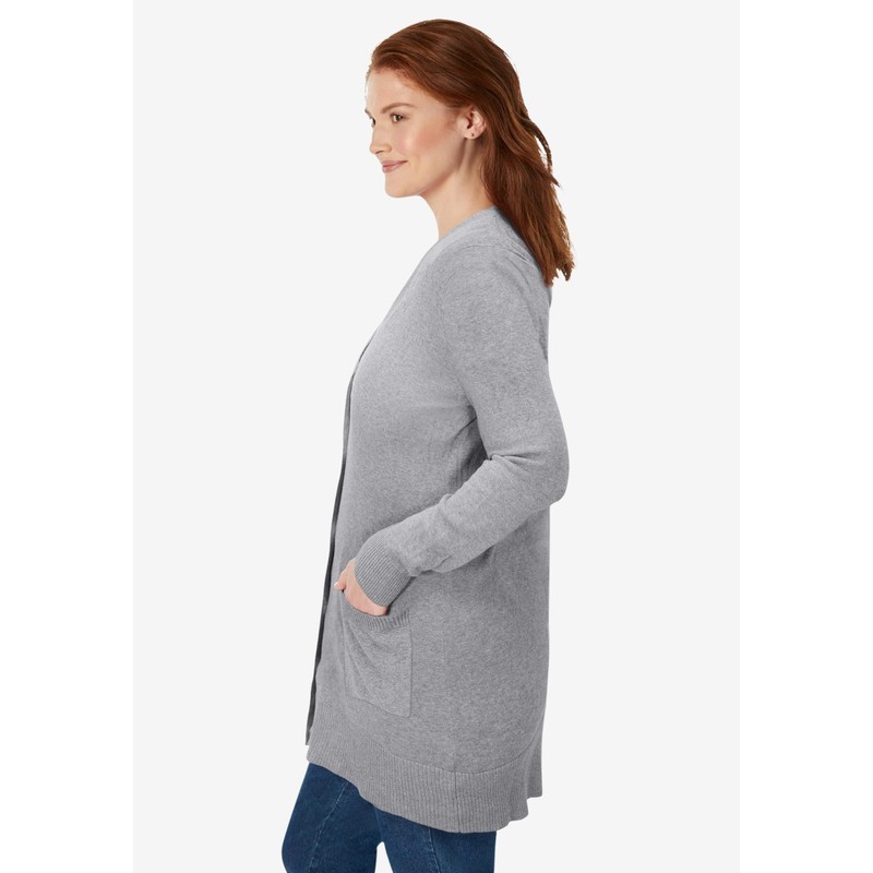 Woman Within Women's Plus Size Perfect Longer-Length Cotton Cardigan - 4X, Medium Heather Grey