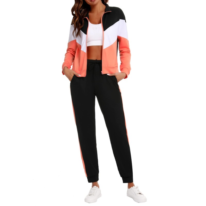 - FASHION DESIGN: Trending color block full zip jacket top, chic mock turtleneck design let you really snuggle into it in windy day. Side striped elastic waistband jogger sweatpants with a adjustable drawstring, it also have 2 pockets that very cozy and convenient to put small accessories or your mobile phone
