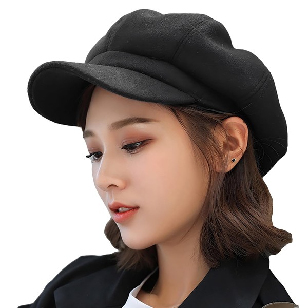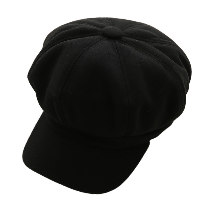 Women Beret Newsboy Hat - 8 Panels Beret Hats Vintage Cabbie Hat Octagonal Cap for Women Girl Black