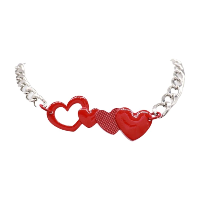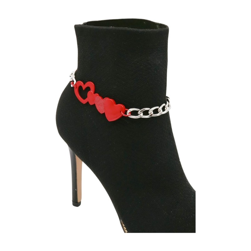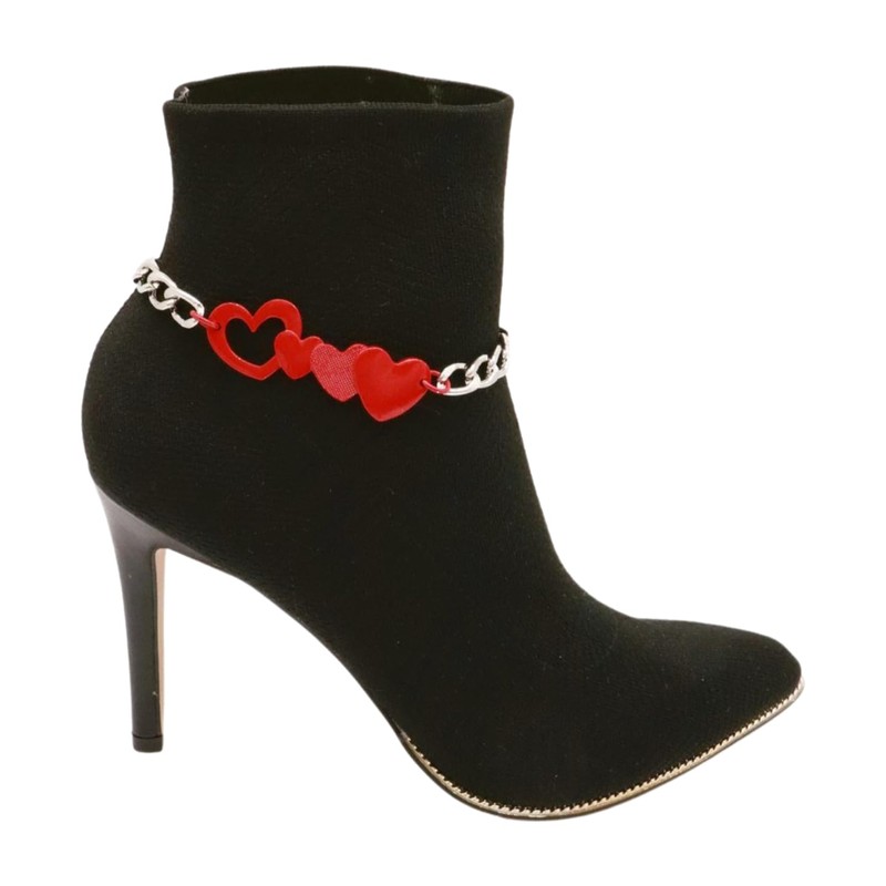 Women Fashion Boot Bracelet Bling Metal Chain High Heel Shoe Bling Red Heart Charm Silver