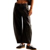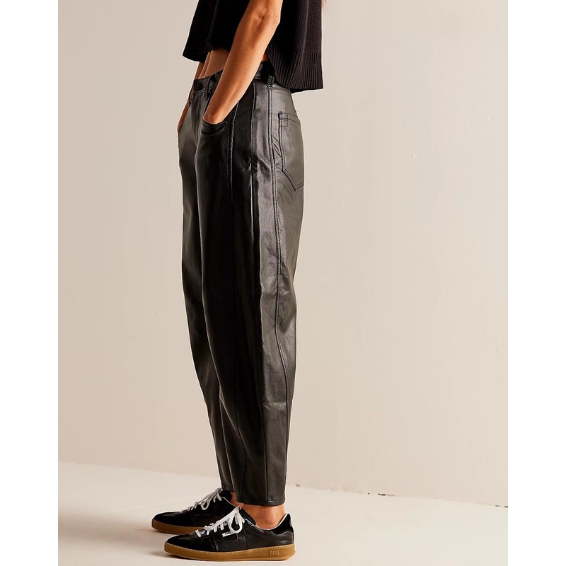 Women Faux Leather Pants Low Rise Baggy Barrel Jeans Wide Leg Trousers with Pockets Black