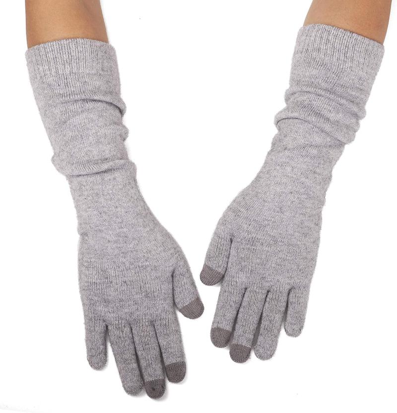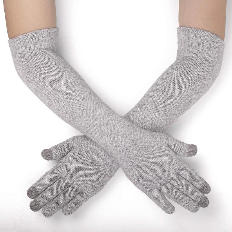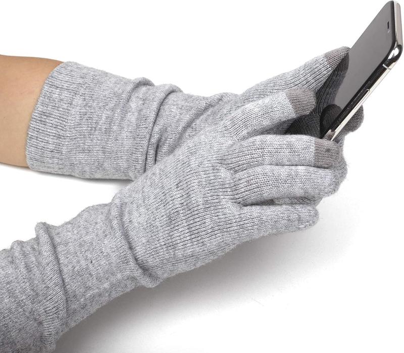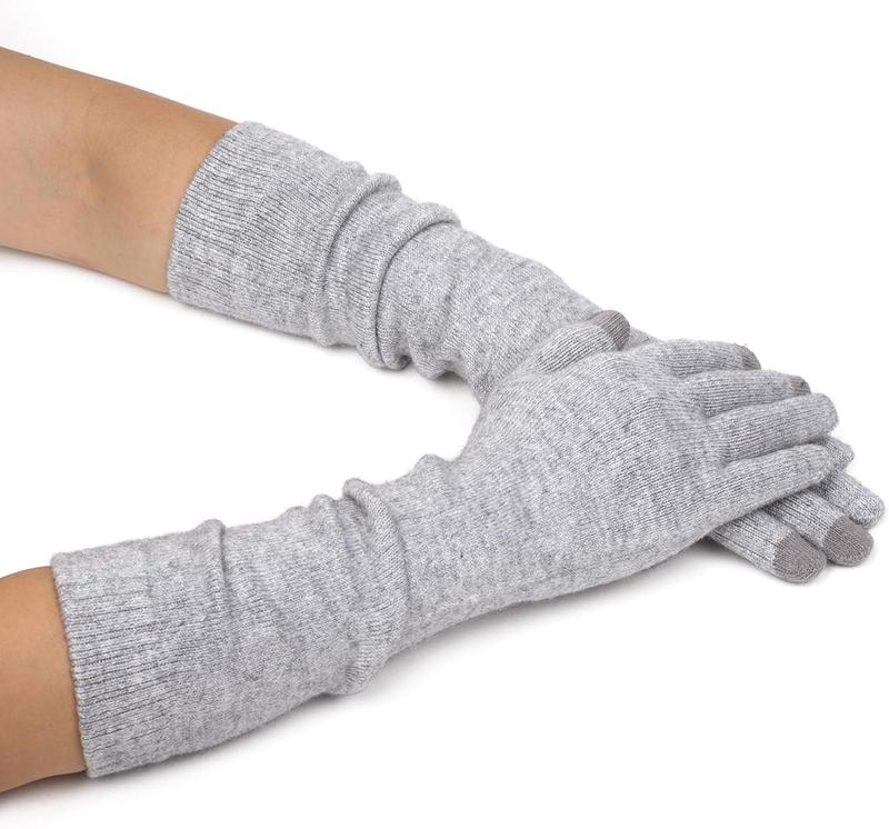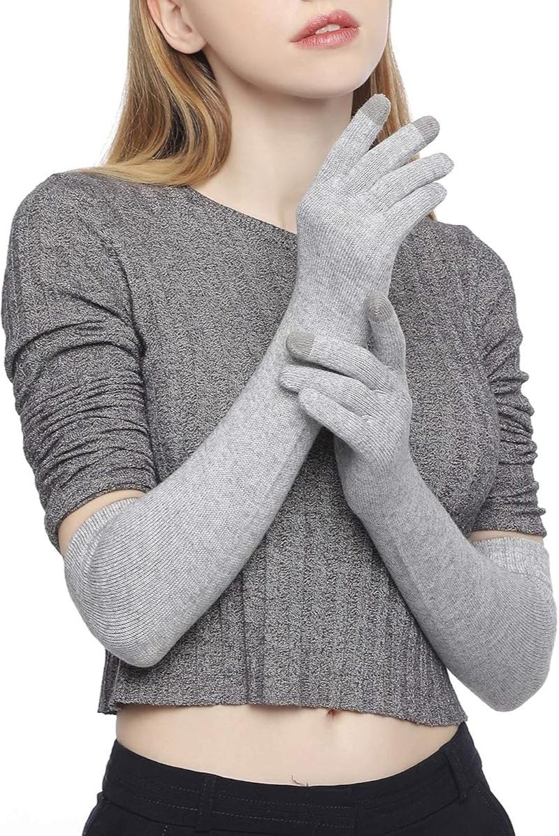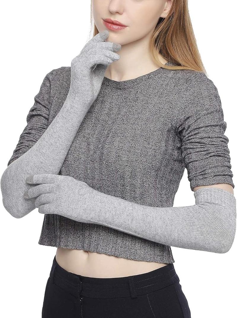 Women Knit Long Gloves Touchscreen Blended Arm Warmers with Fingers Winter Warm Gloves - Color: white