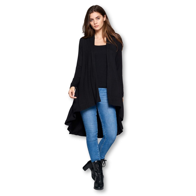 - FEATURES: Our stylish cardigan features long sleeve, open front, maxi long body length, draped, Hi-lo, asymmetric, stretchy, vivid solid colors, light weight, extra eleeves for scrunched look, and lastly it is super soft.
