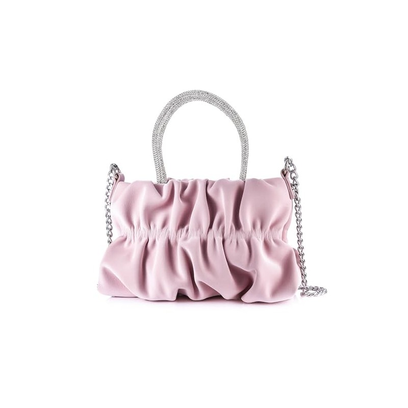 Women Mini Rhinestone Evening Clutch Handbag Soft Pu Pleated Cloud Shoulder Purse Tote Crossbody Bag For Wedding Party, Pink, Small