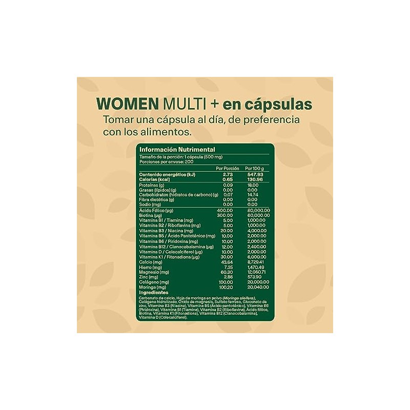Women Multivitamin con 200 capsulas. Multivitamnico para Mujer con Colgeno Hidrolizado, cido Flico, Biotina, Hierro, Calcio, Magnesio, Maca, Zinc y