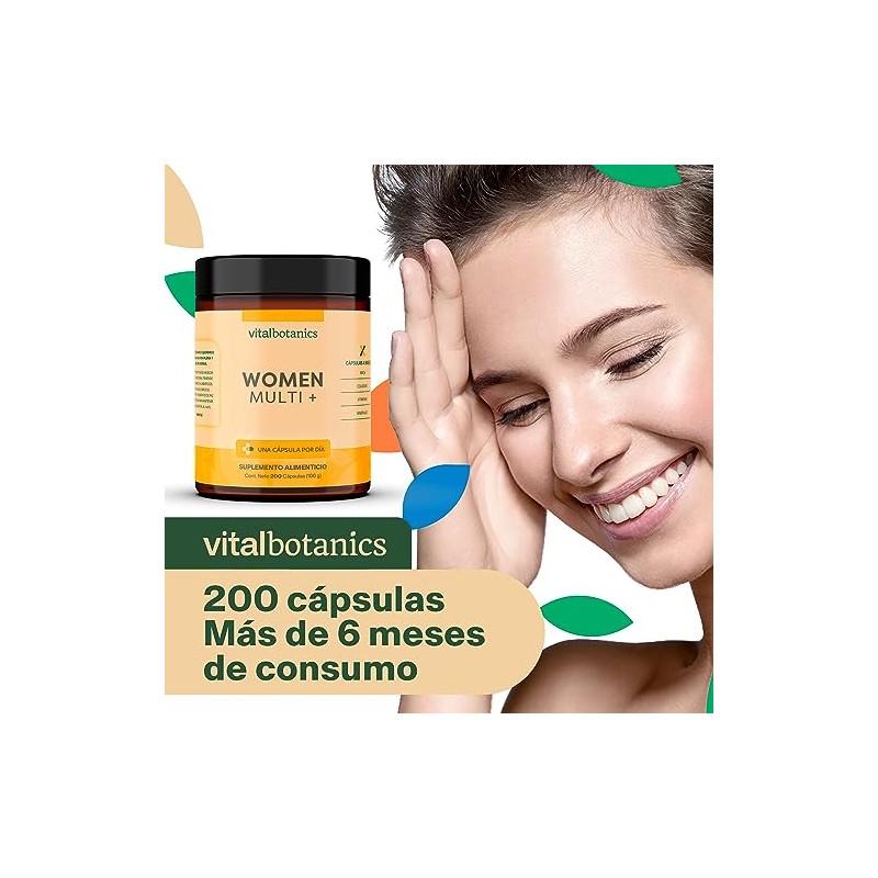 Vitalbotanics - Women Multivitamin + con 200 capsulas. Multivitamínico para Mujer con Colágeno Hidrolizado, Ácido Fólico, Biotina, Hierro, Calcio, Magnesio, Maca, Zinc y Vitamina D (400 IU) Complejo B VitalBotanics.. 💯 Autenticidad y máxima durabilidad comprobadas. Materiales de alta gama y acabados premium. 📦 Entrega rápida y segura. Ideal para quienes buscan lo mejor en calidad y estilo. Producto auténtico con satisfacción total asegurada. ¡No te quedes sin el tuyo y aprovecha esta oportunidad única!
