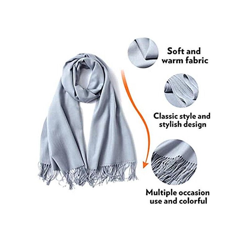 Women Pashmina Wool Feel Silky Classic Solid Wedding Shawl Scarf Stole Wrap - Color: Silver