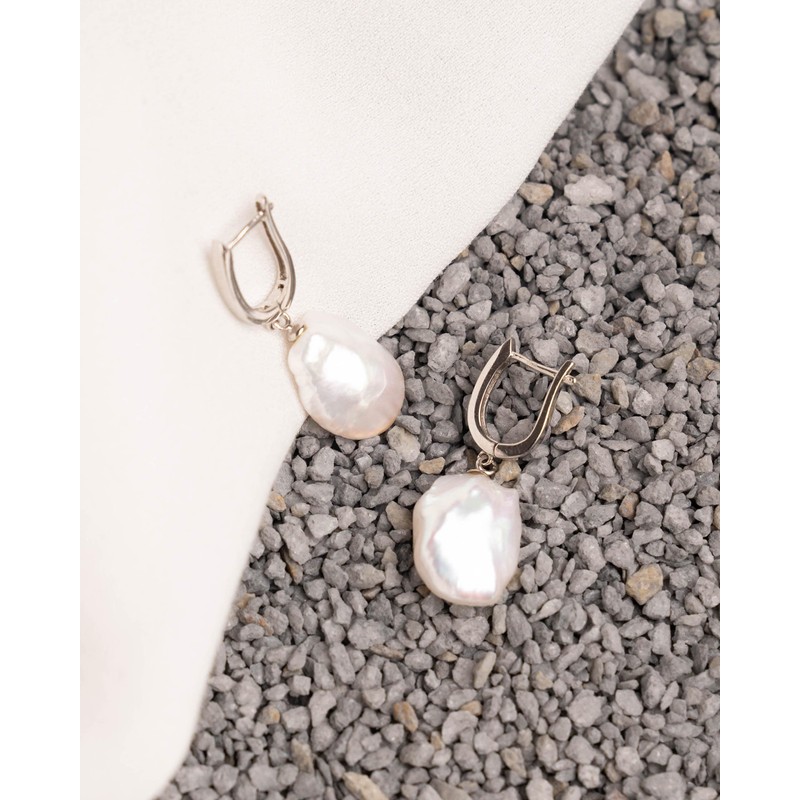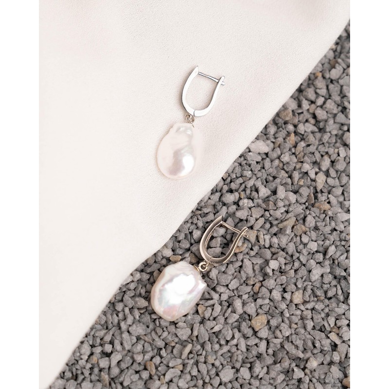 Women Pearl Earrings Freshwater Cultured Pearls | Big Keshi Baroque Pearls 12,00-13,00 mm by Secret & You | Rhodium Plated 925 Sterling Silver with big Butterfly Backs.