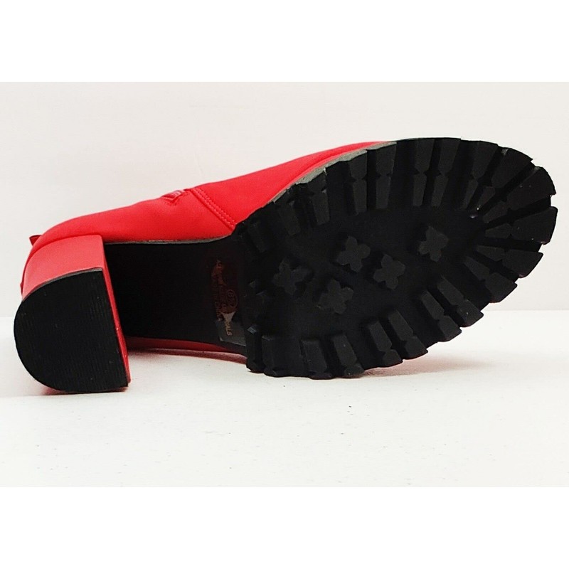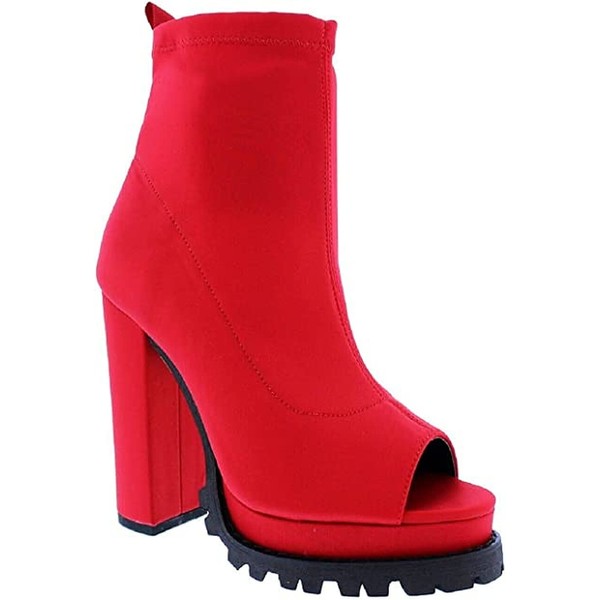 Women Peep Open Toe Cutout Chunky High Heel Ankle Booties Bardi by MATA Red stretch 10