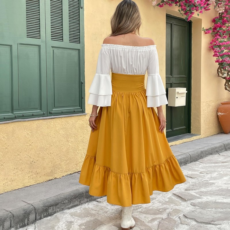 - Renaissance Costume Set: The package comes including 1 medieval trumpet sleeve shirt, and 1 skirt, comprehensive set to meet your costume needs