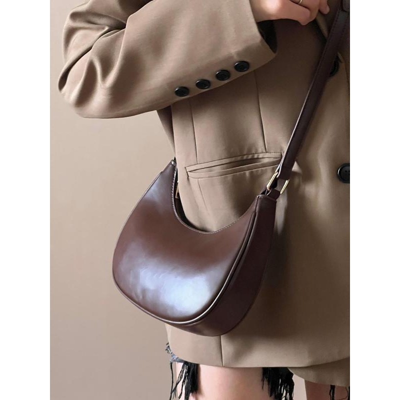Women's 2025 Fall Summer Half-moon Shoulder Bag, Y2k Trendy Handheld Bag, All-match Commuter Hobo Bag for Daily & Work Use for Back To School, As Girlfriend Gifts, Unique Bags:_Coffee Brown_Please Refer To The Pictures for Dimensions