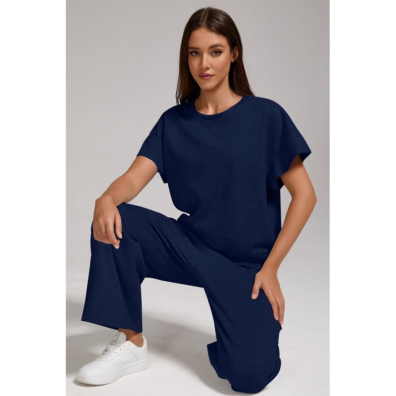Elevate your style and comfort with our women’s two-piece set, crafted from luxurious air layer fabric. Featuring a blend of 43% Rayon, 49% Polyester, and 8% Elastane, this set includes a sophisticated cap-sleeve top paired with wide-leg 3/4 pants, merging timeless elegance with a modern twist. The high-quality fabric ensures a soft, breathable feel with the perfect amount of stretch for a relaxed fit. Ideal for both casual and dressy occasions, it can be paired with boots or sneakers and worn together or separately for versatile styling. Easy to care for, the set