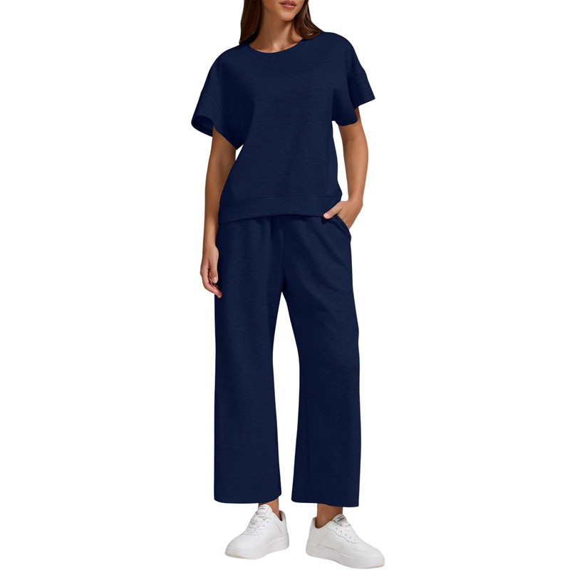 • **Chic Design** – Refresh your wardrobe with this chic two-piece set featuring a cap-sleeve top and wide-leg 3/4 pants. The air layer fabric adds a contemporary touch to a classic silhouette.