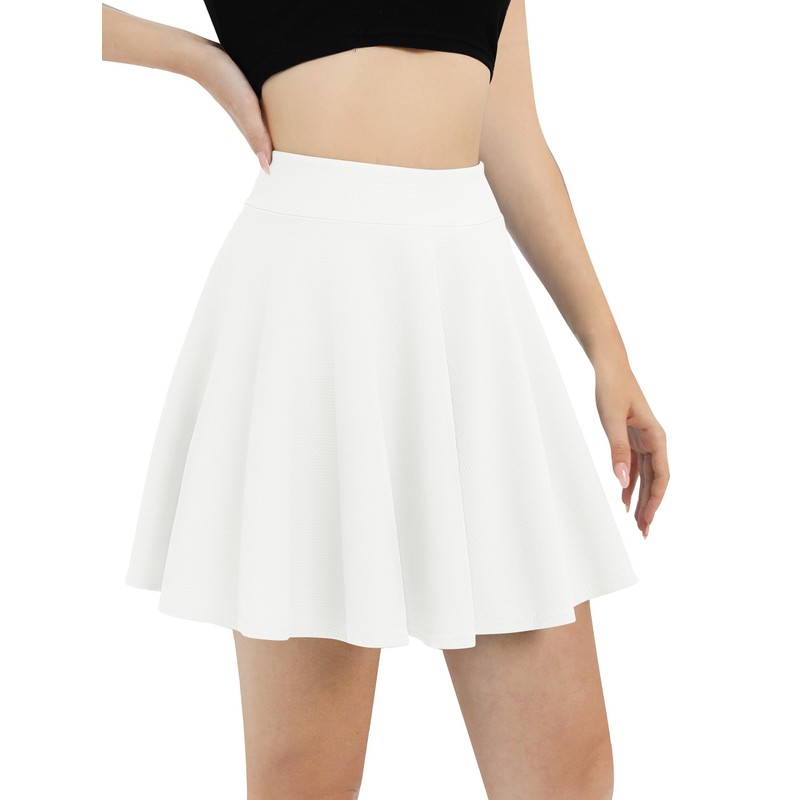 Women's Basic Casual Stretch Waist Flared Mini Skirts Elegant A-line Pull On Skater Skirt, White
