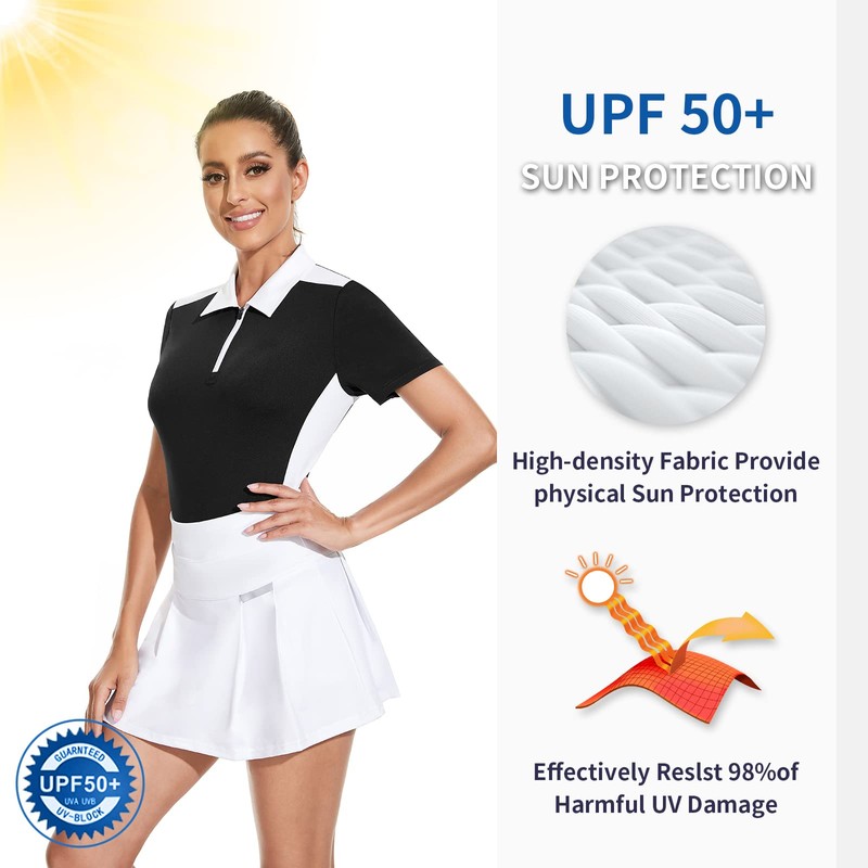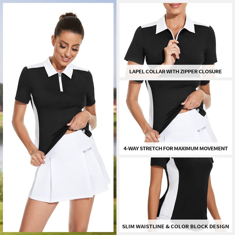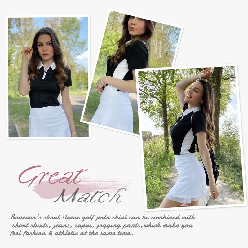 - 【Womens Short Sleeve Golf Shirt Moisture Wicking】Golf polo top for women adopts soft, silky and anti-wrinkle fabric for enhanced movement,this golf outfits for women with quick dry material draws sweat away from your skin and helps keep you dry and comfortable.