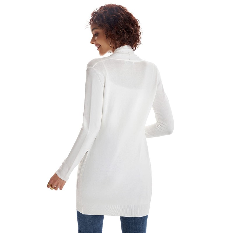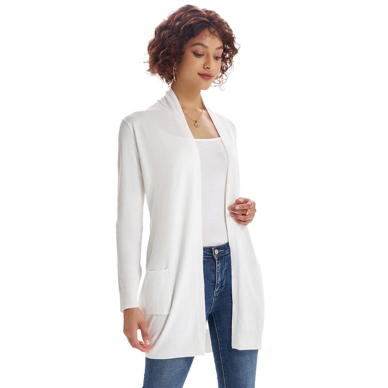 Women's Casual Loose Long Open Front Sweater Cardigans with Pockets Ivory XXXL