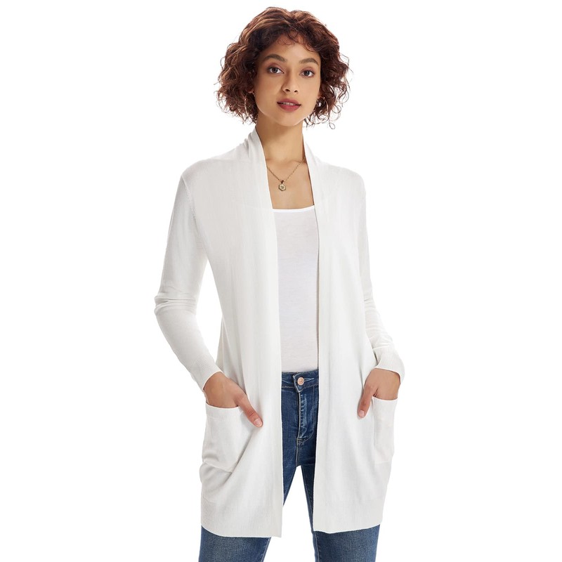 - These open cardigans give your look a fluid, easy look and also create a strong vertical line so you look taller and thinner