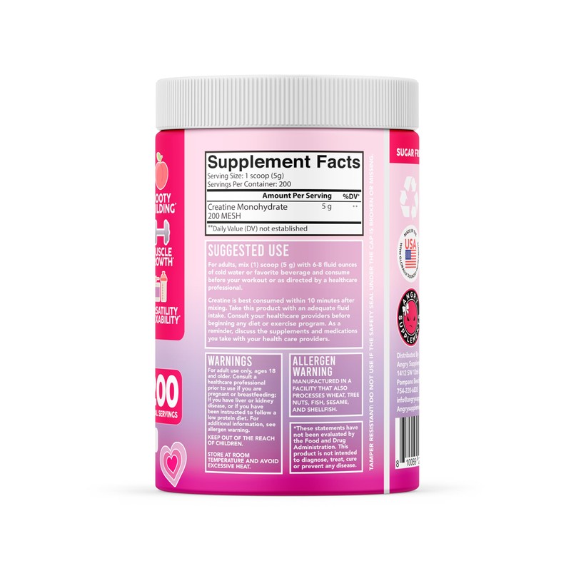 Better Booty Women’s Creatine Monohydrate Glute Powder Drink Mix - 100% Pure Creatina Micronized, 5g per Serving – Energy & Recovery Support – Keto & Vegan Friendly, Unflavored (1 Kilo, 200 Servings)
