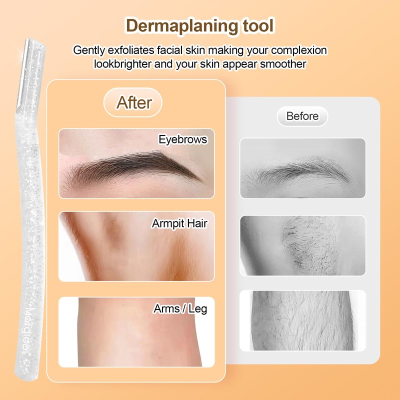 - ENHANCE YOUR OVERALL APPEARANCE: By using the dermaplaning razor, you can remove unwanted hair and promote better blood circulation, resulting in healthier and more radiant-looking skin. Regular use helps you maintain perfect brows and a smooth complexion
