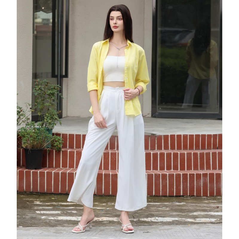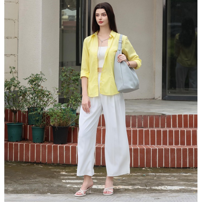 Women's Formal Work Wear Simple Shirt (225 Yellow, S)