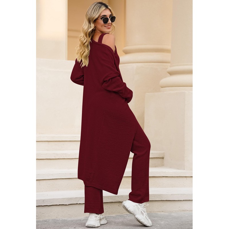 - Solid fuzzy 3 piece loungwear for women, soft, warm and fashion