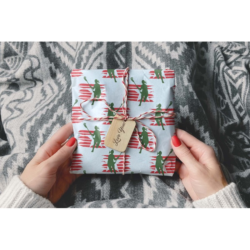 Women's Lacrosse Christmas Gift Wrap Thick Wrapping Paper Girls Lax Stick Player X-mas Present (20 inch x 30 inch sheet)