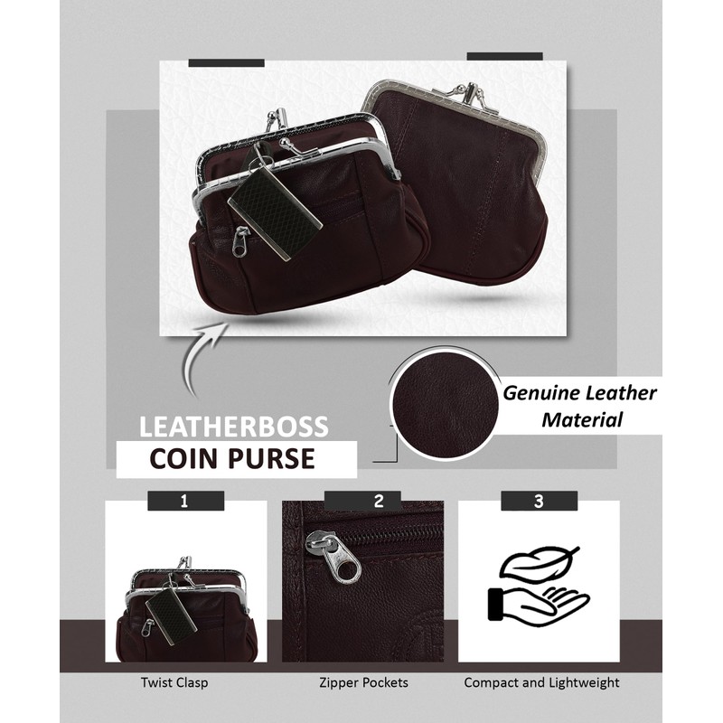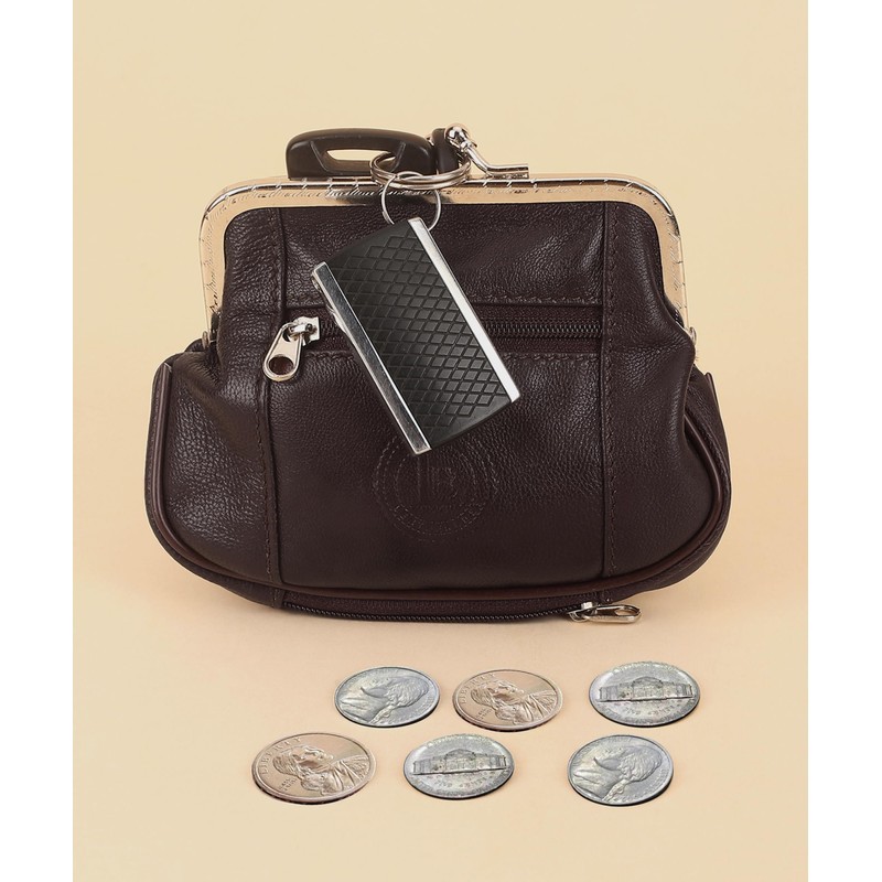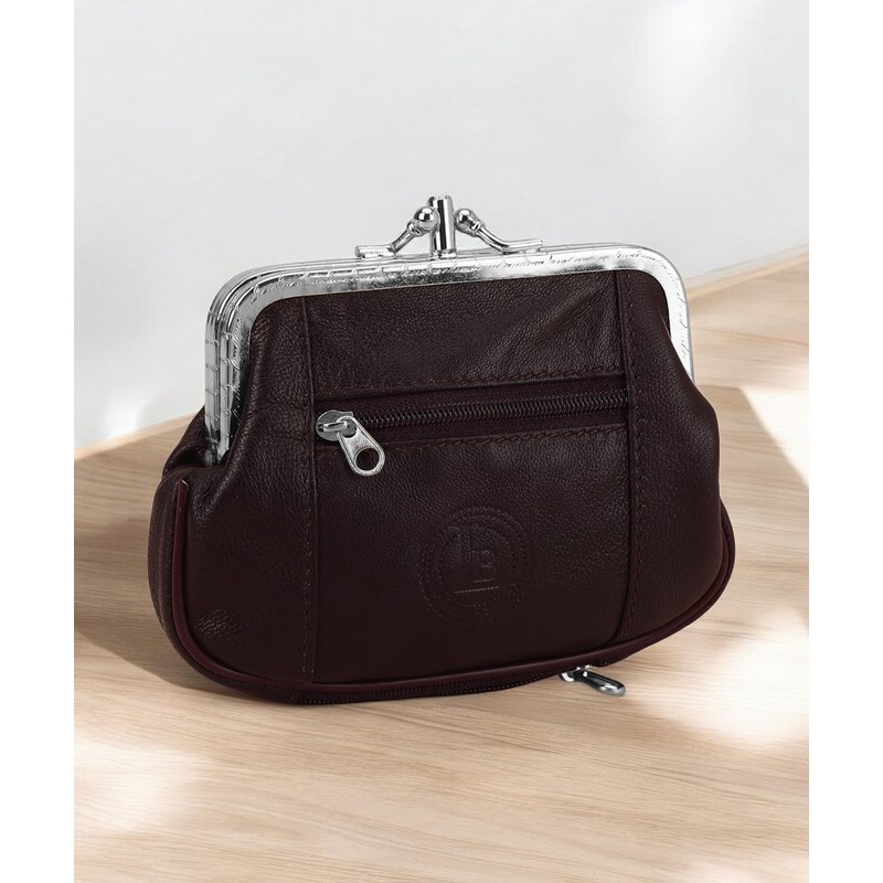 Women's Leather Metal Frame Double Clasp Zipper Coin Purse 5 1/4" x 3 1/4" (Wine)