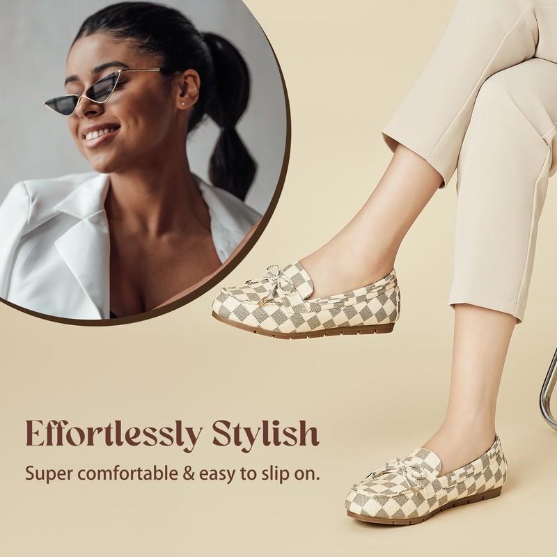 Women’s Loafer Casual On Flat Shoes Classy and Comfortable Slip On Flat Shoes (Beige Grid 8.5)