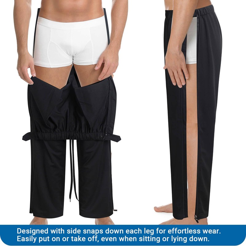 - Easy To Use: Our tear away pants designed with side snaps down each leg, which can be easily put on or taken off even when you are sitting or lying down.