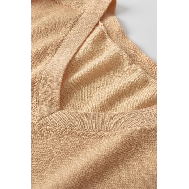 Women's Merino Wool Sweater Casual Lightweight V Neck Raglan Sleeve Knit Top Loose Pullover_Camel_Medium