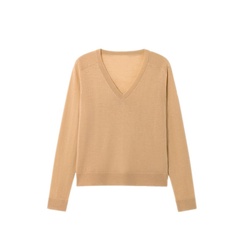 - This is a basic long sleeve pullover for women. Warm V-neck design, ribbed cuffs, and hem. Only finest pure wool, which does not itch. Wear it with elegance, ease, and confidence—must-have items in fall and winter.