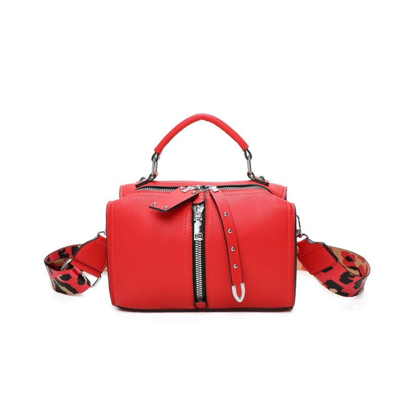 Women's Multi Zipper Trendy Handbag Wide Strap Shopper PU Leather Shoulder Crossbody Bag -P RED