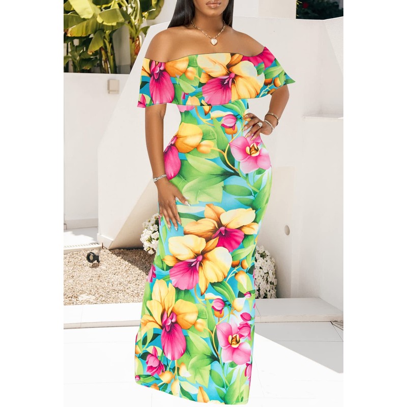 Women's Off Shoulder Maxi Dress Sexy Hawaiian Floral Long Party Dresses
