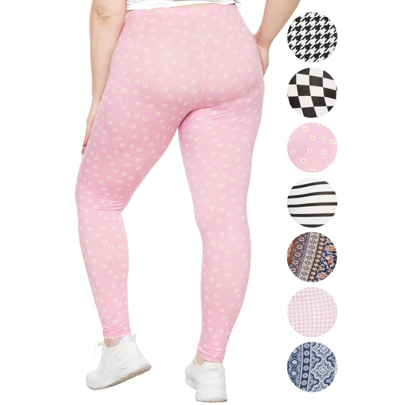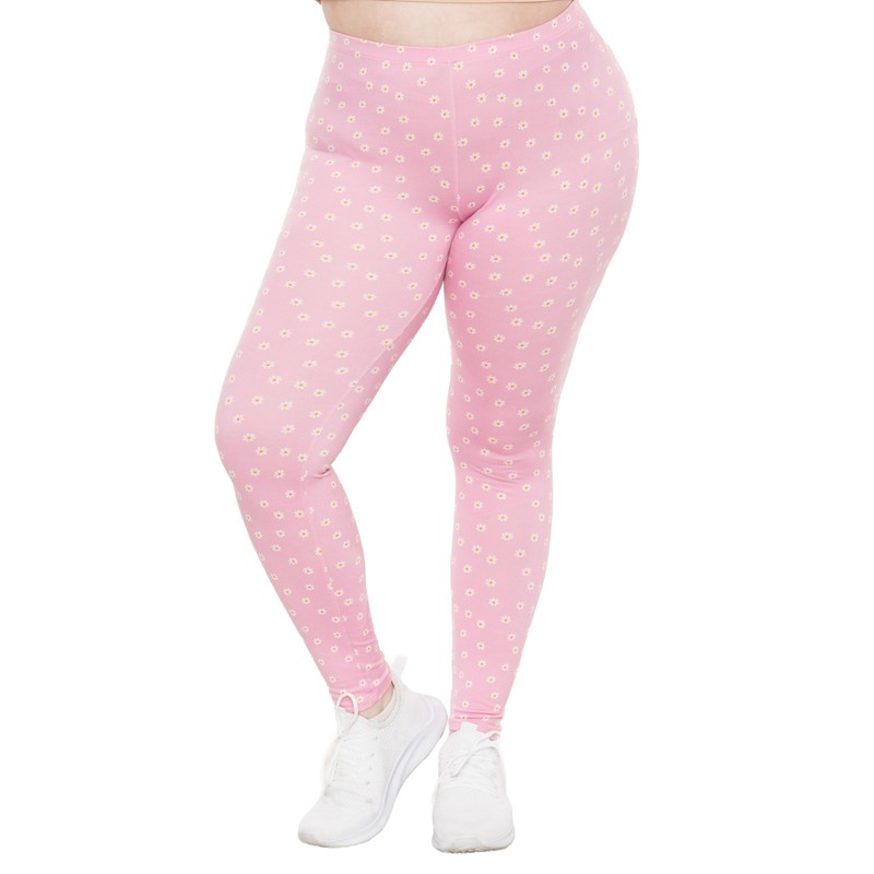Women's Oh So Soft Plus Size Leggings Pink Daisies 3X